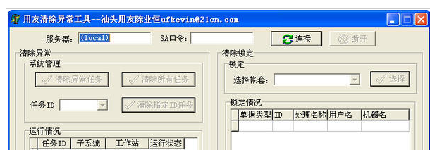 用友官方的传过来的,可以清掉所有任务及异常。当使用系统管理清除异常后,还存在无法使用情况,可以使用此工具。