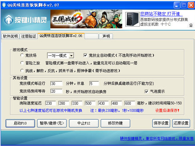 功能介绍;支持后台,支持场升级,冒险之旅自动操作。智能调速,优化CPU,智能停止自动换房换房,真正的解放双手。操作步骤:F10启动 F12停止(脚本需后才可以使用)
