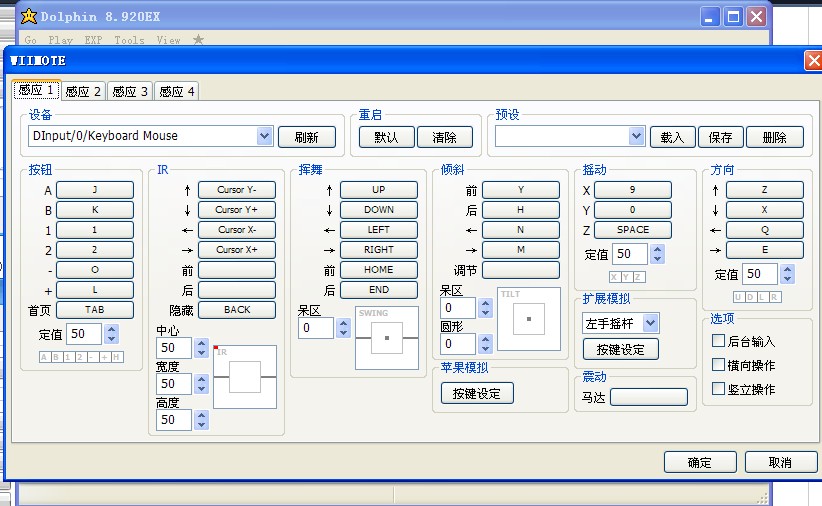 ⑧ Wii的游戏控制应该要设置感应插件(预设方便不同游戏的操作)