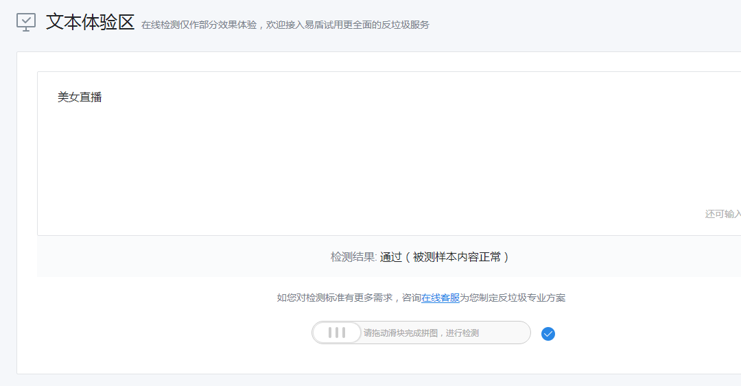 在线接口实时返回检测结果,帮助客户尽早拦截有害数据。为了进一步提高最终结果的准确性,易盾配备了专业编审团队,会对在线检测结果中不确定数据进行7*24小时审核。同时,在线检测每日会根据离线结果进行,提升在线检测效果。