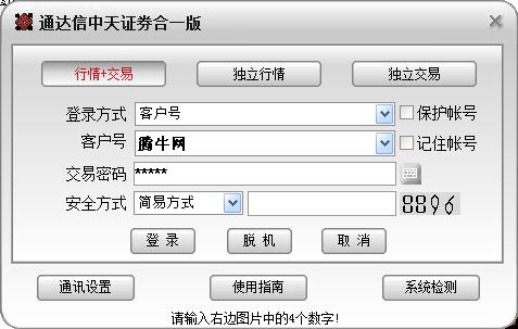 通达信中天证券合一版,即“中天证券通达信合一版”,之所以叫合一版,是因为它把通达信行情分析和通达信交易软件结合在了一起,用户安装一个客户端,就能实现行情下载、网上交易、查看证券资讯等常用的功能