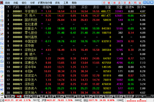 2、完善的报价分析功能:股票分类细致,行情栏目众多,灵活的排序,随时增删与板块股。