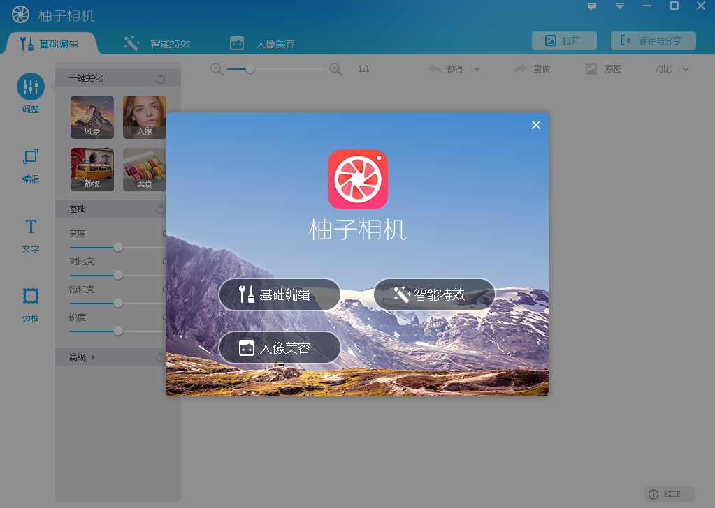 柚子相机PC版让你在电脑上体验最具专业的,柚子相机拥有基础编辑、智能特效、人像美容三大特色功能,无论是人像、风景、静物还是美食,都将给予它更美的姿态,快来使用吧,美图秀秀专业版的袖子相机!
