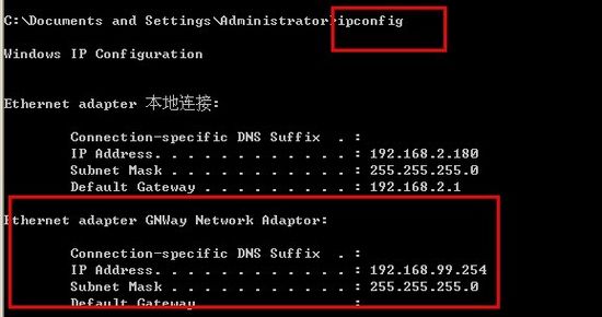 3.客户端电脑点击【开始】—【运行】输入【cmd】 在黑色命令符输入【ipconfig】看是否分配IP