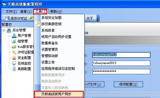 2.重新点击服务器管理后台【天联高级版用户同步】,如果提示【操作成功】用户才真正的同步了,否则无效