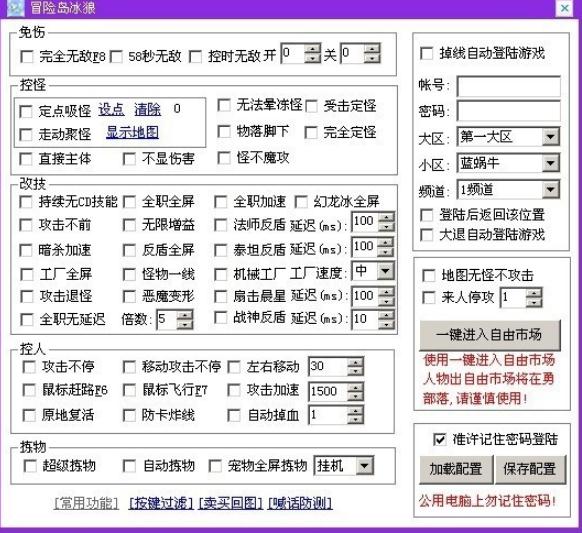 飓风无限制1,飓风无限制2,飓风无延迟,机械师免变身,金币过滤,人物自动捡物。自动补血,自动补魔,自动喂宠,物品过滤,自动喊话,智能按键,掉线报警,掉线关机,测谎报警,测谎关机,掉线自动登录,记录当前坐标。