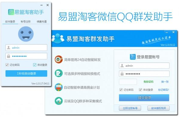 易盟微信QQ最新版下载,帮助淘客快速完成微信和qq一键群发,易盟淘客助手主打多任务模式,智能识别淘宝客链接转换、优惠劵连接,还有很多哦~