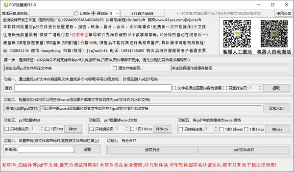 金浚批量操作是一款非常好玩的办公软件,它的页面简洁,功能强大, 支持对pdf文件进行批量提取、加密、转换、拆分、合并、水印等操作,使用起来十分便利,感兴趣的朋友快来下载吧。