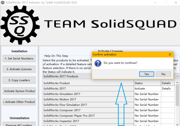 3、单击下面的Activate Licenses按钮,再单击Yes按钮;