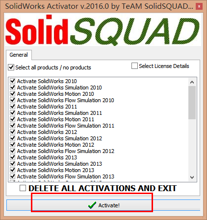 2.之后,打开文件夹,选择SW2010-2016.Activator.GUI.SSQ.exe,会出现如下界面: