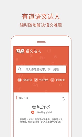 有道语文达人是网易有道词典出品的语文学习、翻译、汉语词典软件,让你随时随地、不会就查,解决语文学习考试中的字音字形、古诗古文翻译、易考字词、成语、笔顺、多音字、多义字、组词造句、近反义词等常见的难点问题。产品收录新华字典、现代汉语词典、古汉语字典、古诗赏析、文言文翻译、语文中高考词汇、字词考点等实用、权威内容。