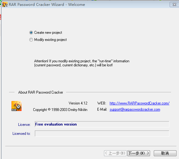 第二步、如果是第一次使用,请选择“创建新项目”,单击“下一步”按钮。