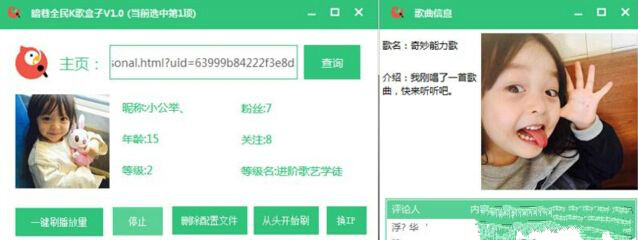 暗巷盒子是一款全民K歌刷播放量工具,可以获取全民K歌昵称、年龄、等级、等级名、粉丝数量等各种信息,支持下载、在线播放功能,功能还是比较全面的。是一个十分好用的辅助工具,有需要的朋友可以下载使用。