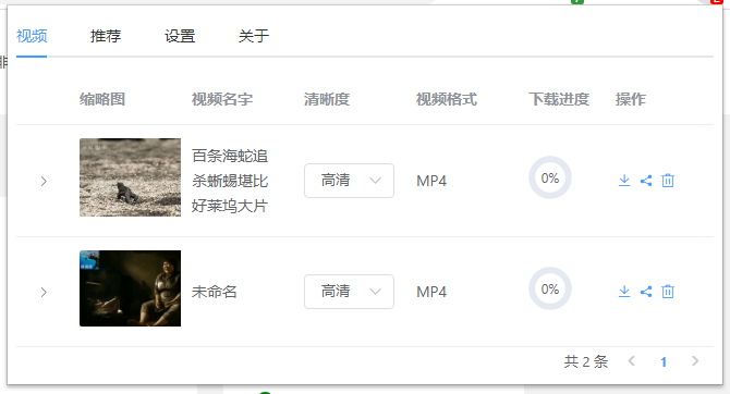 同时,可以直接选择下载的视频清晰度、查看下载进度,以及分享和删除操作。