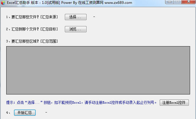 提供的这款《Excel汇总助手》可以将多个格式一致的Excel文档的数字区域累加求和,汇总到总的Excel文档。