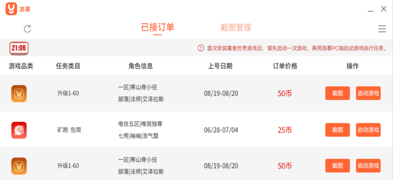 游募代练客户端是游募推出的桌面客户端,独立的PC端执行任务,够专业,够安全,一键发单,极速响应,安全保障,放心的剑网3交易平台!