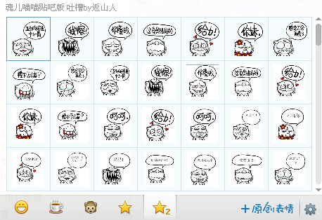 贴吧神来一句表情包共有178个qq表情,这是由推出的一种回复表情,表情都非常的邪恶,采用画外音的方式制作,表情动作有:妹汁、你懂个吊、酱油、蛋定、禽兽啊、暖床、欢迎、很傻很天真、御姐控、你妹、屌丝、萌呆等,各种吐槽,看上去非常搞笑,是经常玩贴吧的同学们必备表情。