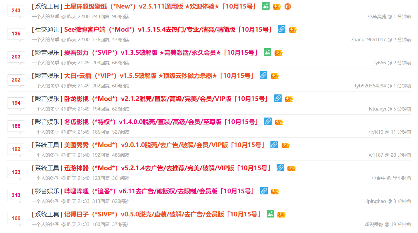 当浏览论坛时,脚本会自动清理帖子列表中 帖子标题开头的〖XXX〗【XXX】文字 ,这样 APP 名称左边对齐看起来更舒服(效果见本页底部第二张图片)!