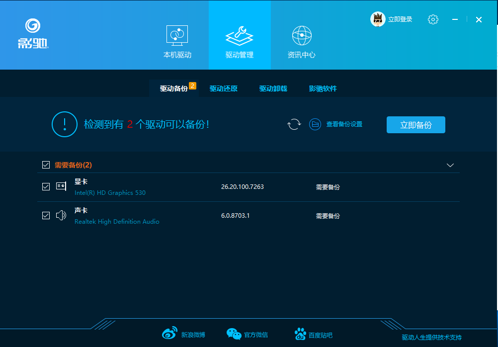 2、支持驱动备份、还原、卸载等功能;