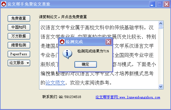 重系统进行检测,您检测合格后再拿学校去检测,这样确保您在学校检测时万无一失通过查重关!保证专业术语、原意不变,通顺,保证修改到要求的重复率范围内。具体价格需根据修改难度而定,我们已经帮助上万名同学顺利毕业!