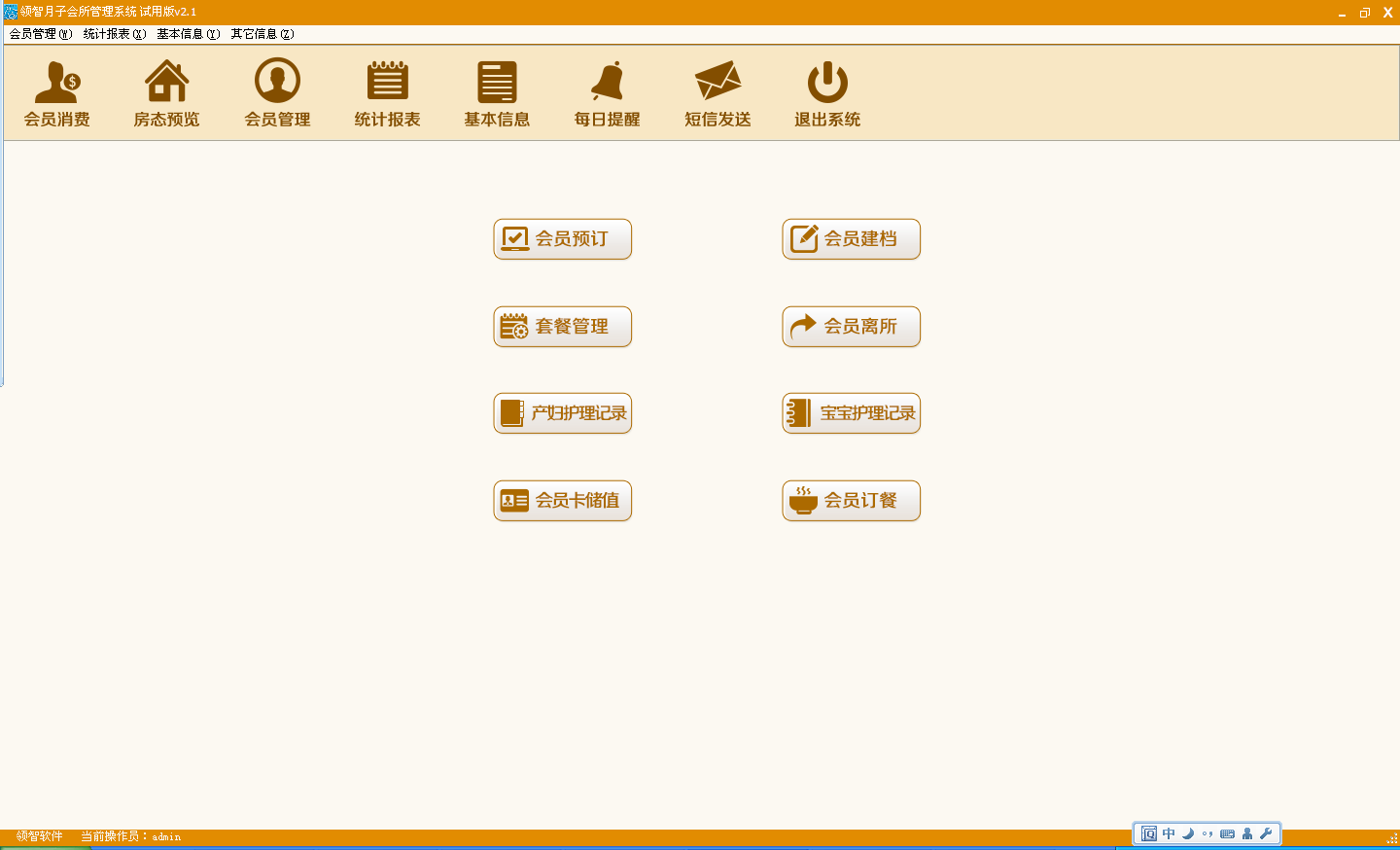 领智月子会所管理系统是针对现在流行的会所,月子中心等专门量身定制的一款行业管理软件,它是一款标准的,能对会员的消费,每日提醒,报表等都包含在内。感兴趣就快下载吧。