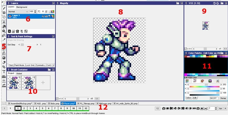 除了放大窗口外,还有一个用于存储和重复使用画笔的画笔容器。