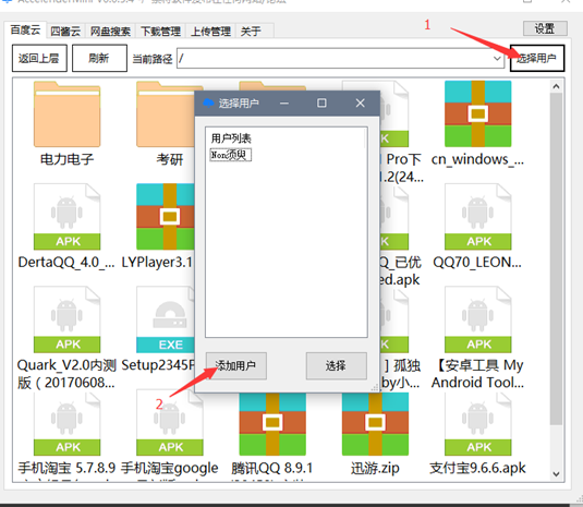 注意:坐骑迷你版可以绑定多个百度云账号,在选择用户功能里面可以切换账号