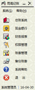 权限管理:包括添加、删除操作员,分配操作权限等管理; 账套管理:建立账套,以及账套备份、还原、复制等功能。