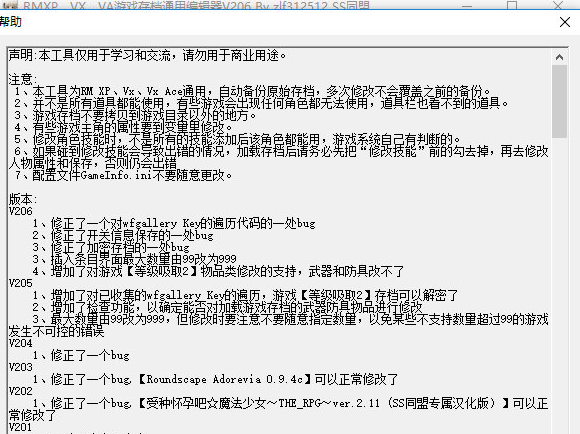 1、本工具为RM XP、Vx、Vx Ace通用,自动备份原始存档,多次修改不会覆盖之前的备份。