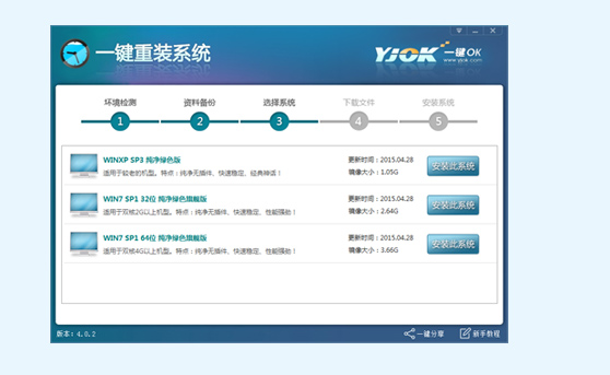 steps 3:在此您可根据个人喜好和电脑的配置选择需要系统,直接点击"安装此系统"即可,一般情况下单核处理器选择XP,双核和四核选择win7,小于2G内存选择32位,反之选择64位!