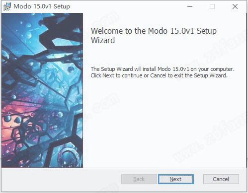 1.在本站下载好数据包后进行得到安装程序“Modo15.0v1_Windows.msi”,鼠标双击运行进入安装向导点击“next”进入下一步