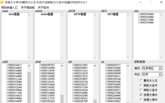 百度神卡分为百度大神卡和百度小神卡,是一款非要优惠实用的手机套餐。为了帮助用户朋友更好更轻松的获取自己想要的百度神卡账号,在此送上百度大小神卡批量申请扫号工具。