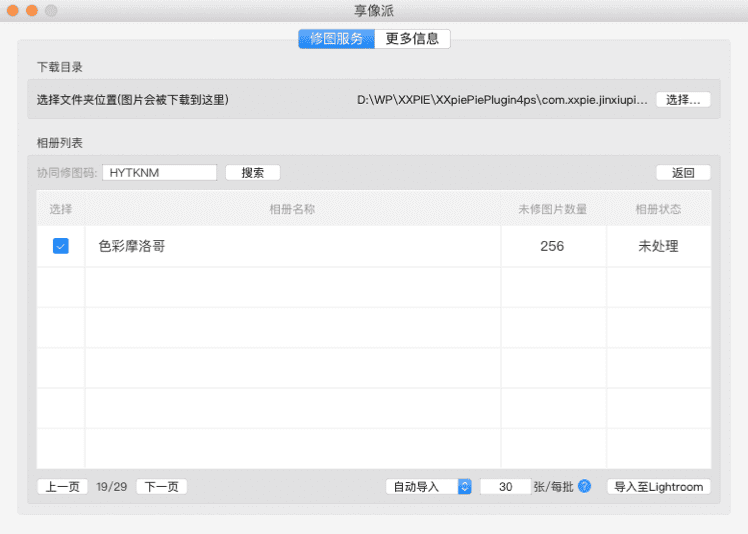 自动导入:按照设定的数量将照片导入至Lr,完成一批后,插件将自动导入下一批照片