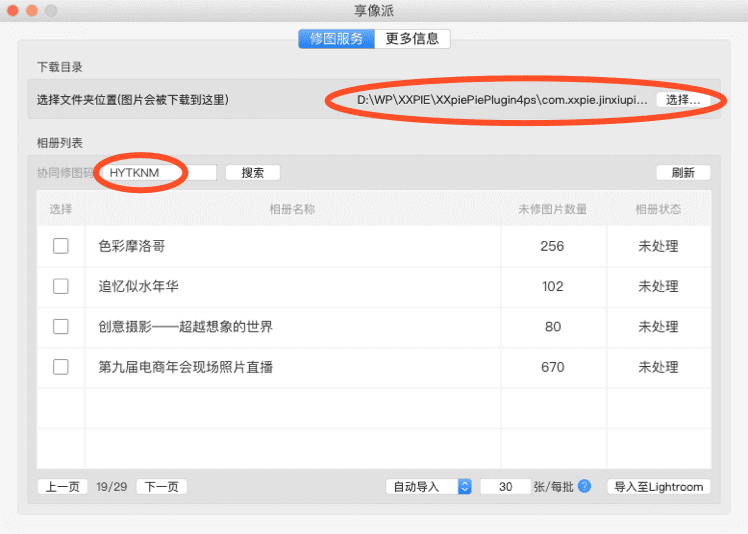 “相册列表”可看到待修图相册,可在左上角搜索框中输入“协同修图码”在插件中快速查找任务