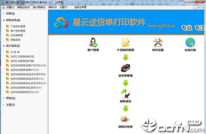 ★完善的资料管理,里面包括了“产品物料管理”、“客户资料管理”、“送货单管理”和基本资料(物料种类、业务员…)