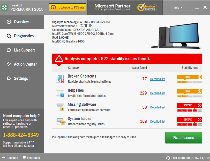 系统修复TweakBit PCRepairKit 能够用了清理无效键,修复损坏的快捷方式和整理注册表,使之更加紧凑和组织。一旦你的电脑是无干扰,我们希望它保持这种方式让您可以享受。