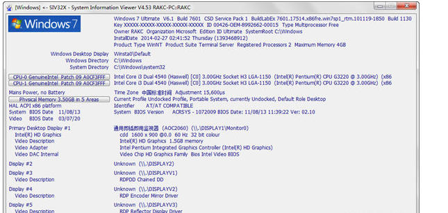 4、显卡型号、显存大小,显卡支持的分辨率模式和颜色数量等。