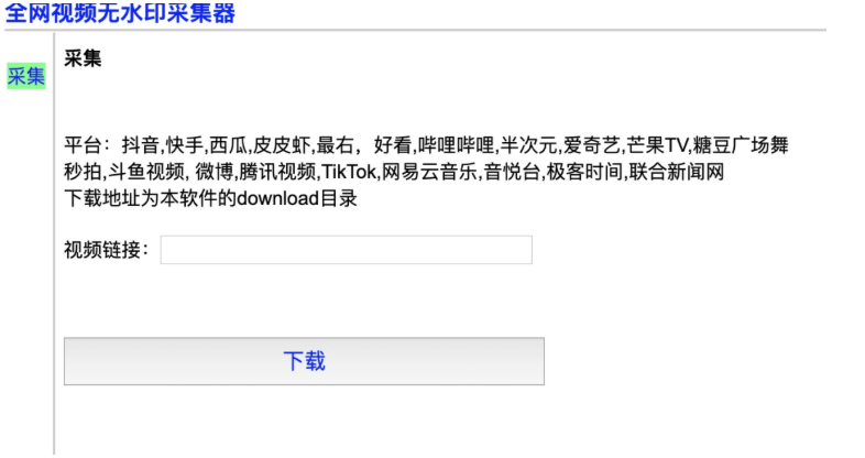 全网无水印视频采集工具是一款非常好用的,支持全网各个主流的短视频平台,能够一键批量采集用户全部视频,也能直接按链接采集,功能十分强大,有需要的用户不要错过了,欢迎下载使用!