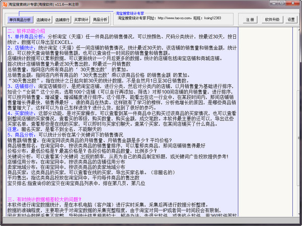 [店铺排行]:把淘宝店铺按行业分类,按周销售量排序,可以知道这一行业,在一定时段内,那家店铺销售量最大,那家店铺销售量增长最快,近期那间店铺在主导着这一行业,可以分析出这间店铺销量增长最快,增长的是那些商品,更好地了解这一行业。