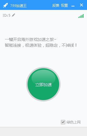799加速王一键开启海外游戏加速之旅,智能连接,极速体验,并且安全稳定不掉线,连接世界畅想自由,还能天天使用积分奖励哦。