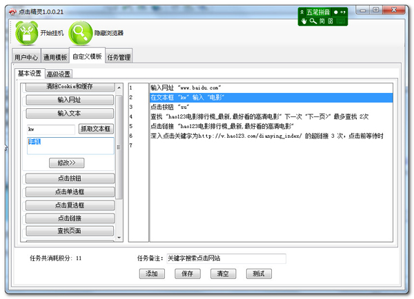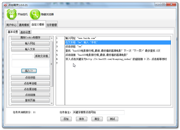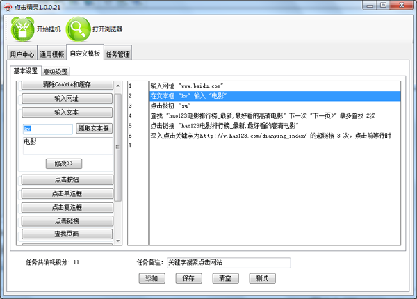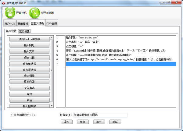 15、软件会自动计算此任务要消耗的积分,用户可以输入此任务的备注,以防止在任务比较多的时候,不清楚每个任务作用。