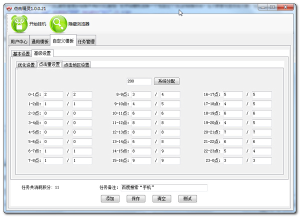 可24小时分成48个时段按不同区域,精确控制流量,自定义点击效果。