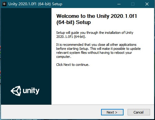 5、然后在安装主程序UnitySetup64-2020.1.0f1.exe