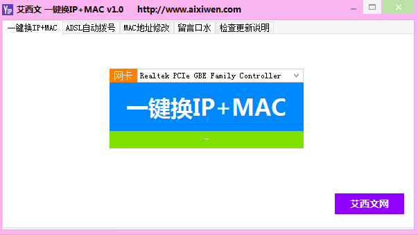 一键换IP+MAC是一款综合上网辅助工具,集合IP修改和MAC地址修改,操作方便,一键修改,没有多余的操作,无需重启,生效。一个软件就可以解决。非常的方便实用。