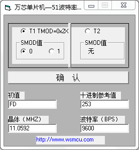 万芯单片机51波特率计算工具是一款易用的单片机开发辅助计算工具,帮助开发人员方便的进行51单片机的波特率计算。在串行通讯中,收发双方的数据传送率(波特率)要有一定的约定。在8051串行口的四种工作方式中,方式0和2的波特率是固定的,而方式1和3的波特率是可变的,由定时器T1的溢出率控制。
