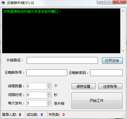 云蜘蛛外链工具是一款免费的外链,这款软件绿色小巧,可以帮助你将大量的长尾关键字利用大型平台推送到百度进行收录与排名,通过百度云蜘蛛程序用户可以在短时间内将大量包含广告信息的页面推送到互联网中。并且这一切都是全自动化完成。