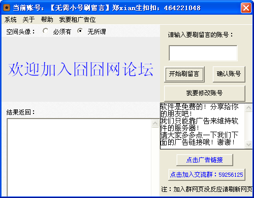 囧囧网制作的一款无需小号刷工具,完全免费使用,开启软件之后,输入你的QQ号,点击确认后即可开始刷留言,简单便捷,赶紧下载体验吧。