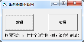 之前为大家带来过网不断网神器,很多学生朋友用过都说好。这次作者再次更新,发布了新的IE不断网神器。同样能够突破高校校园网限制,让你半夜上网不再断网。此版本为IE浏览器专版,只适用于IE浏览器使用。之前的今晚不断网,校园网不断网神器还是可以使用!