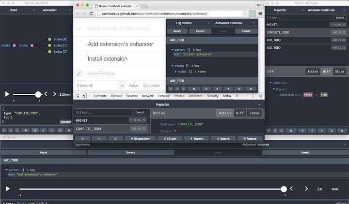 Redux DevTools用于调试应用程序的状态更改。该扩展为Redux开发工作流程提供了启动功能。这是一个开源项目。