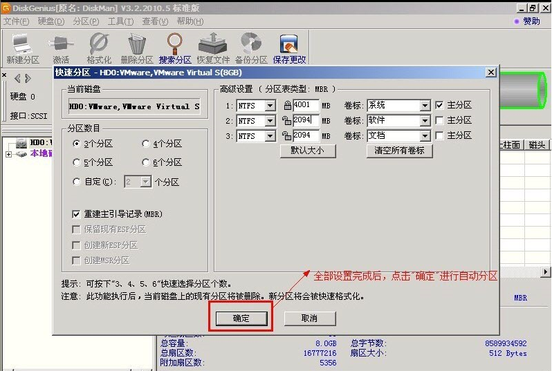 第九步:修改分区数目的容量大小。并点击其它分区容量空白处,自动调整全部容量